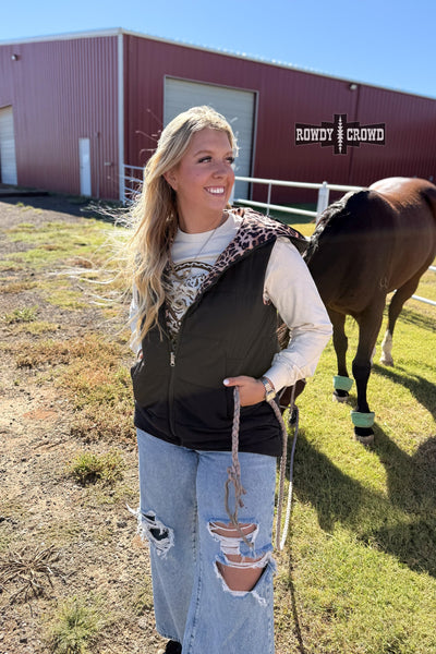 Two looks. One vest. Zero regrets. The Vagabond Reversible Vest gives you the best of both worlds with a sleek black side for everyday wear and a bold leopard print side when you’re feeling a little extra. Lightweight yet cozy, this zip-front vest features functional pockets and an easy fit that layers perfectly over tees, thermals, or hoodies.