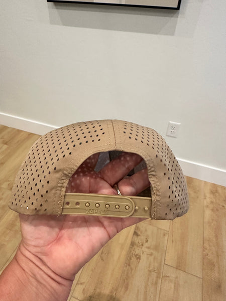 Blue Collar Degenerate with a Camo Hat Patch on a Blackhawk Perforated Tan Hat with white and black rope. These are comparable to the Richardson 355 Performance Hat just not as expensive.